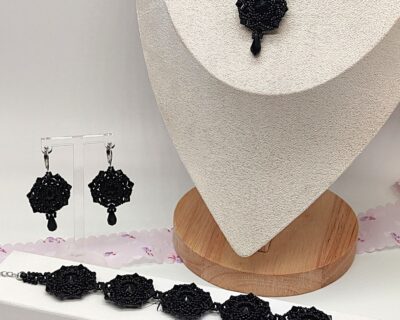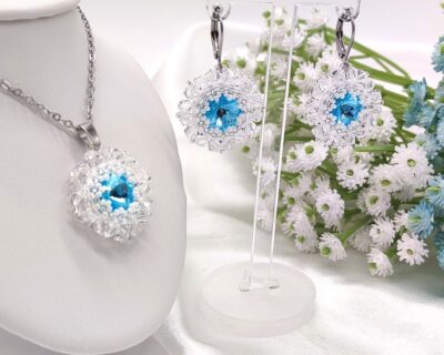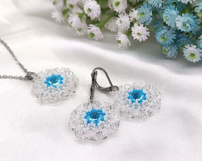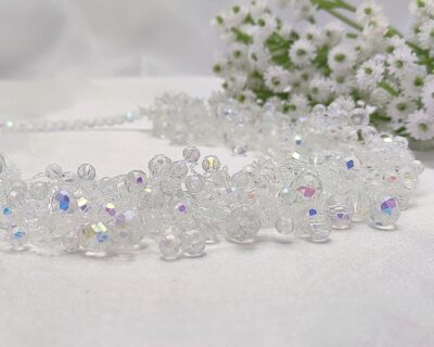 Sú to ručne šité šperky ihlou a niťou. Každú korálku, kryštál alebo perlu prešívam minimálne 2 a viackrát . Pri šití používam najkvalitnejšiu a najdrahšiu niť Fireline.