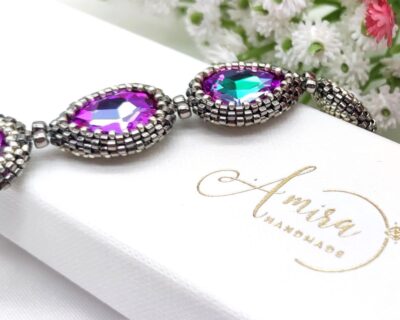 - Náramok som ušila z Blue Zircon Crystal a Japonských sklenených Miyuki Korálok vo farbe Hematit. Zapínanie je z chirurgickej ocele. Dĺžka náramku 17 cm + 4 cm predlžovacia retiazka. V prípade záujmu vám môžem ušiť náramok aj v inej dĺžke. Prosím uveďte to do poznámky pri objednávke alebo ma kontaktujte na mirka@amirahandmade.com K náramku si môžete kúpiť aj náušnice tu https://www.amirahandmade.com/produkt/site-nausnice-z-blue-zircon-crystal-zapinanie-chirurgicka-ocel/ alebo…