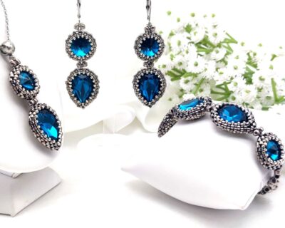 Originálny šitý náramok z Blue Zircon Crystal