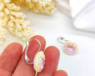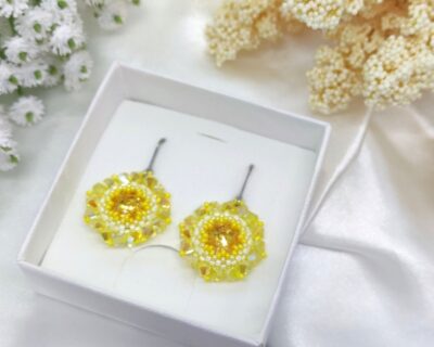 Šité žlté náušnice z kryštálov so zapínaním z chirurgickej ocele
