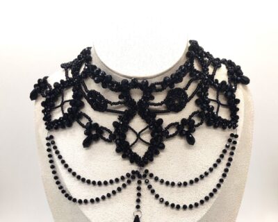 Luxusný šitý náhrdelník z brúsených kryštálov v čiernej farbe