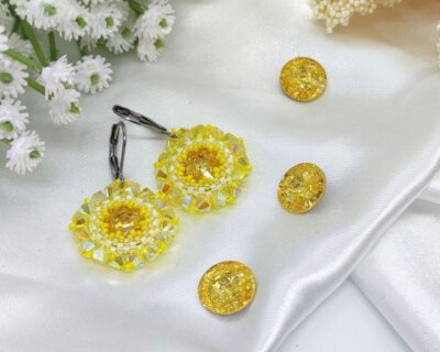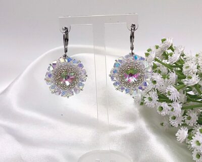 - Náušnice som ušila z Preciosa kryštálov v nádhernej nebesky modrej farbe a farbe krištáľu. Japonských sklenených korálok v striebornej farbe. Zapínanie je z chirurgickej ocele. Náušnice vám môžem ušiť aj so zapínaním zo Striebra Ag925 Ródium. Vtedy by bola cena náušníc 40.90 eur. Prosím kontaktujte ma mailom mirka@amirahandmade.com Dĺžka náušnice : 3,7 cm Priemer obšitého kryštálu : 2,5 cm K náušniciam…