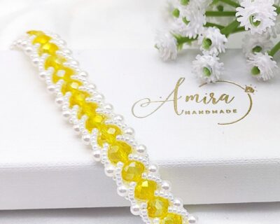 - Materiál: Japonské sklenené korálky Miyuki (strieborný pokov). Technika: Ručné šitie (beadweaving). Zapínanie: chirurgická oceľ Dĺžka: 17 cm + č cm predlžovacia retiazka Náramok môžem ušiť aj v inej farbe a dĺžke. Pri inej dĺžke sa môže cena mierne navýšiť. Prosím kontaktujte ma mailom.