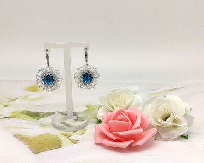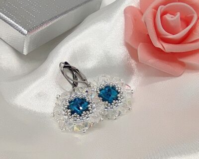 Šité elegantné náušnice z kryštálov v modrej a Crystal farbe