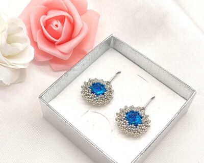 - Náušnice som ušila z kryštálov v nádhernej modrej farbe a Japonských sklenených Miyuki korálok v striebornej farbe. Zapínanie je z chirurgickej ocele. Dĺžka náušnice : 3 cm Šperky balím do darčekových krabičiek s mojím logom alebo vrecúšok, takže ich môžete rovno darovať. Pre zákazníkov z Čiech mám český účet, takže môžete platiť v korunách. V prípade záujmu ma prosím kontaktujte mailom mirka@amirahandmade.com a ja…