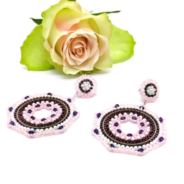 Ručne šité kruhové náušnice z Miyuki a Toho sklenených korálok.