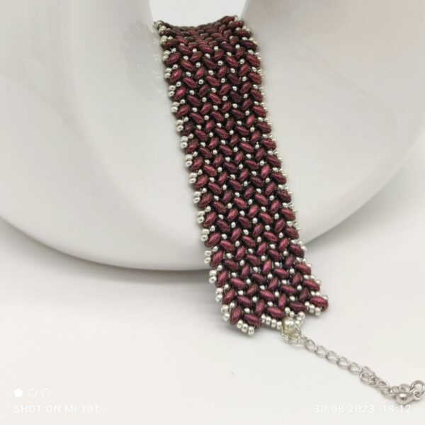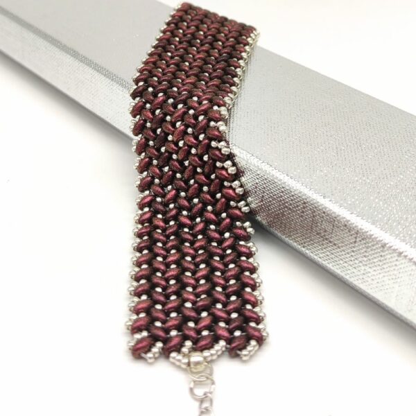 Ručne šitý náramok z korálok Superduo v bordo-hnedej farbe a Japonských korálok Miyuki.