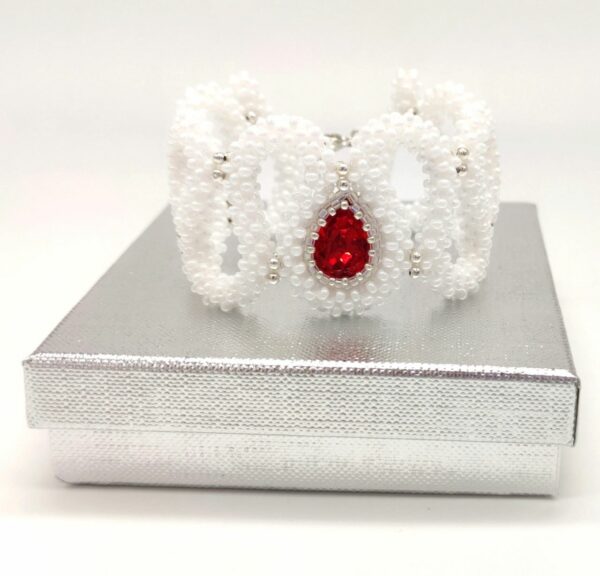 Ručne šitý náramok z Preciosa, Miyuki  sklenených korálok a Siam kryštálu.