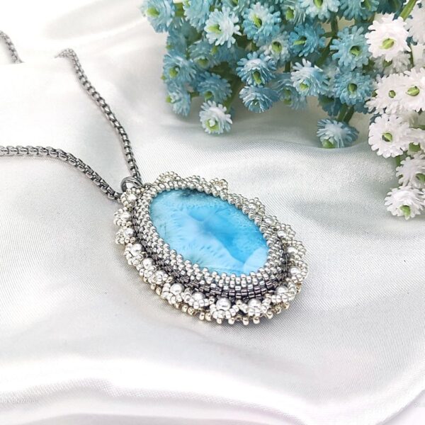 Pridajte prvú recenziu pre “Originálny šitý prívesok z polodrahokamu LARIMAR a perál”