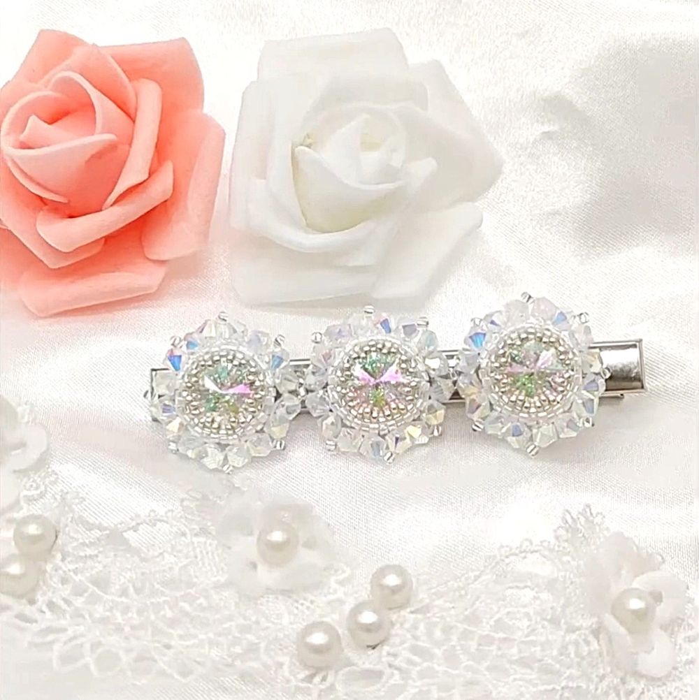 Ručne šitá svadobná spona „Flora“ s Preciosa Crystals