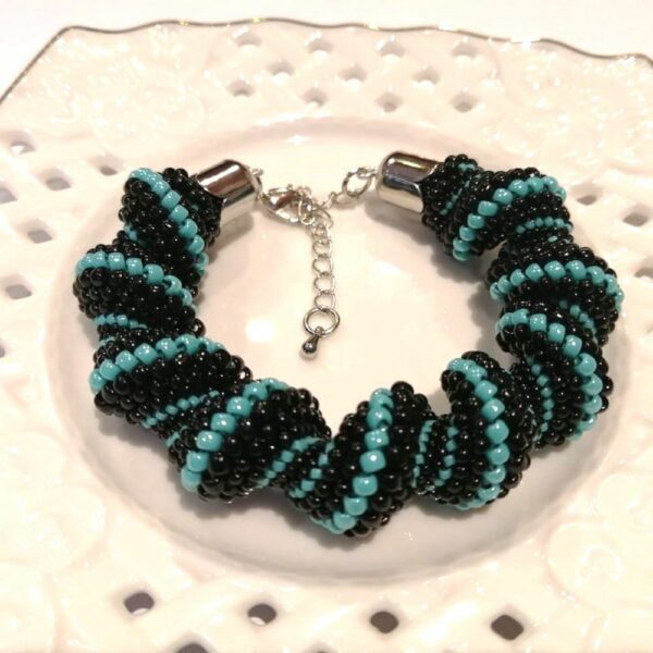 Náramok je ručne šitý, kedy prišívam korálku ku korálke. Každú korálku prešijem minimálne 2x.