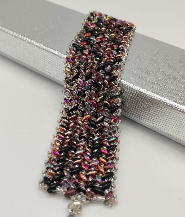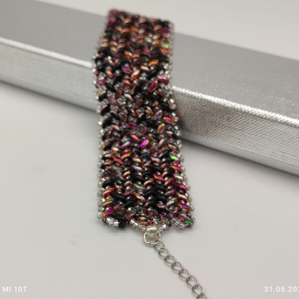 Ručne šitý náramok z farebných korálok Superduo a Japonských korálok Miyuki.
