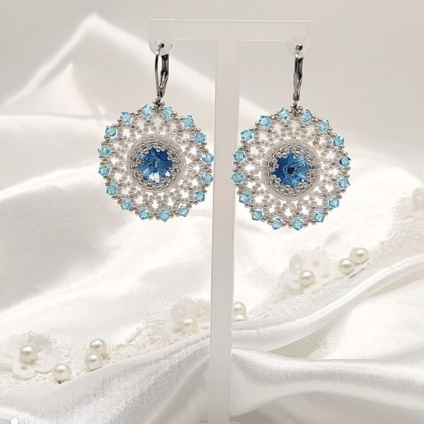 Šité náušnice v bielo modrej farbe z Aquamarine Crystal