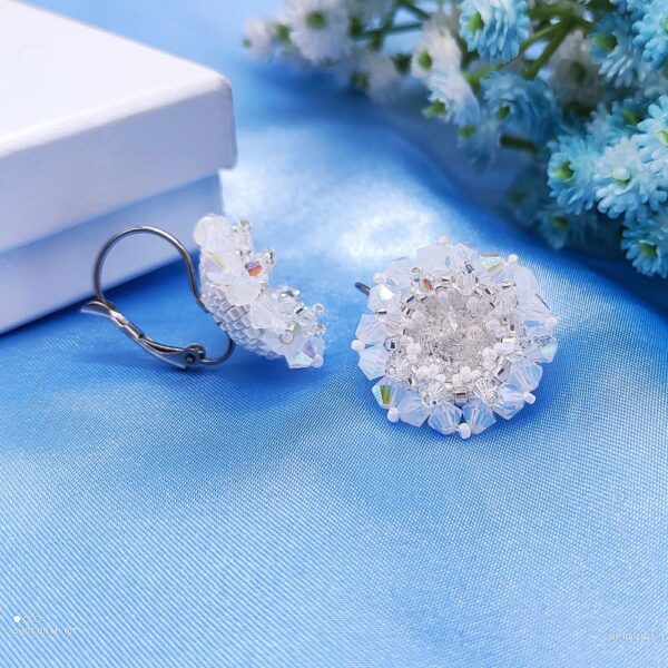 Náušnice som ušila z Preciosa Crystal White Opál a Japonských sklenených Miyuki korálok v bielej farbe. V centre náušnice je nádherný Crystal Ice.