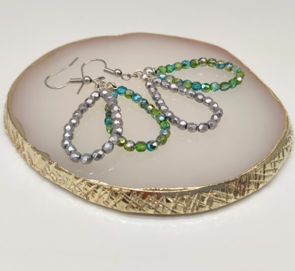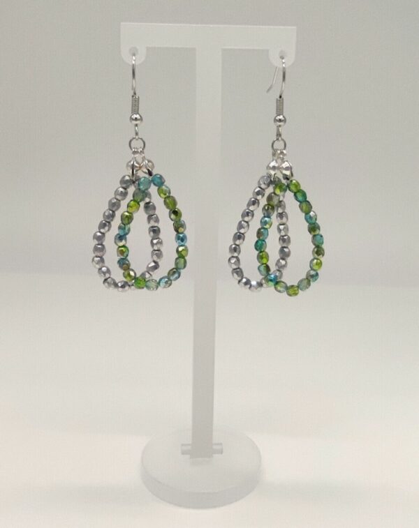 Visiace náušnice zeleno-strieborné