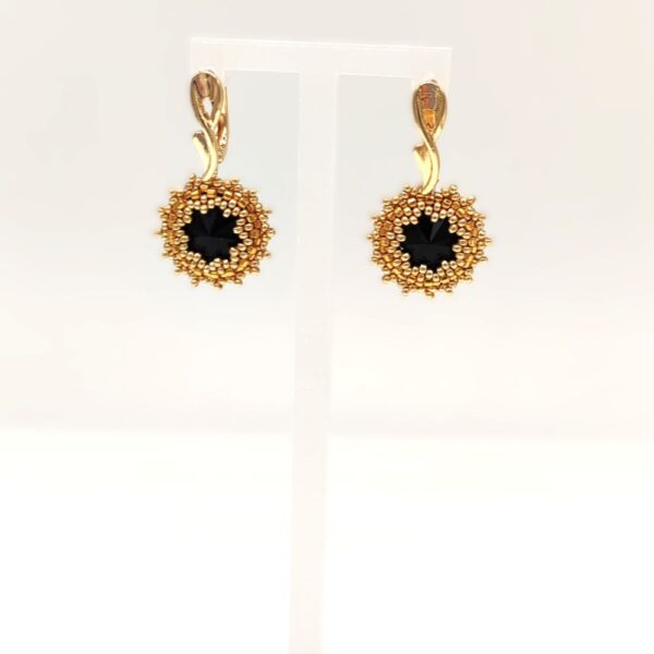 Zlato-čierne ručne šité náušnice z Jet kryštálov
